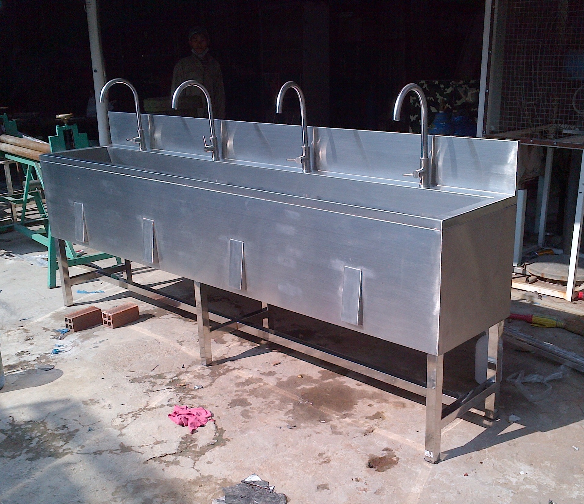 Chậu rửa tay dùng gối mở nước chuyên dùng cho phòng sạch ngành y tế, sản xuất thực phẩm... các ngành đòi hỏi an toàn vệ sinh cao.